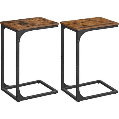 VASAGLE Set of 2 C-Shaped Side Table, Bedside Table, Sofa Side Table, Coffee Table, with Metal Frame, Industrial