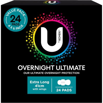 U BY KOTEX Extra Overnight Ultimate Pads with Wings 24 Count (4 x 12 Pack)